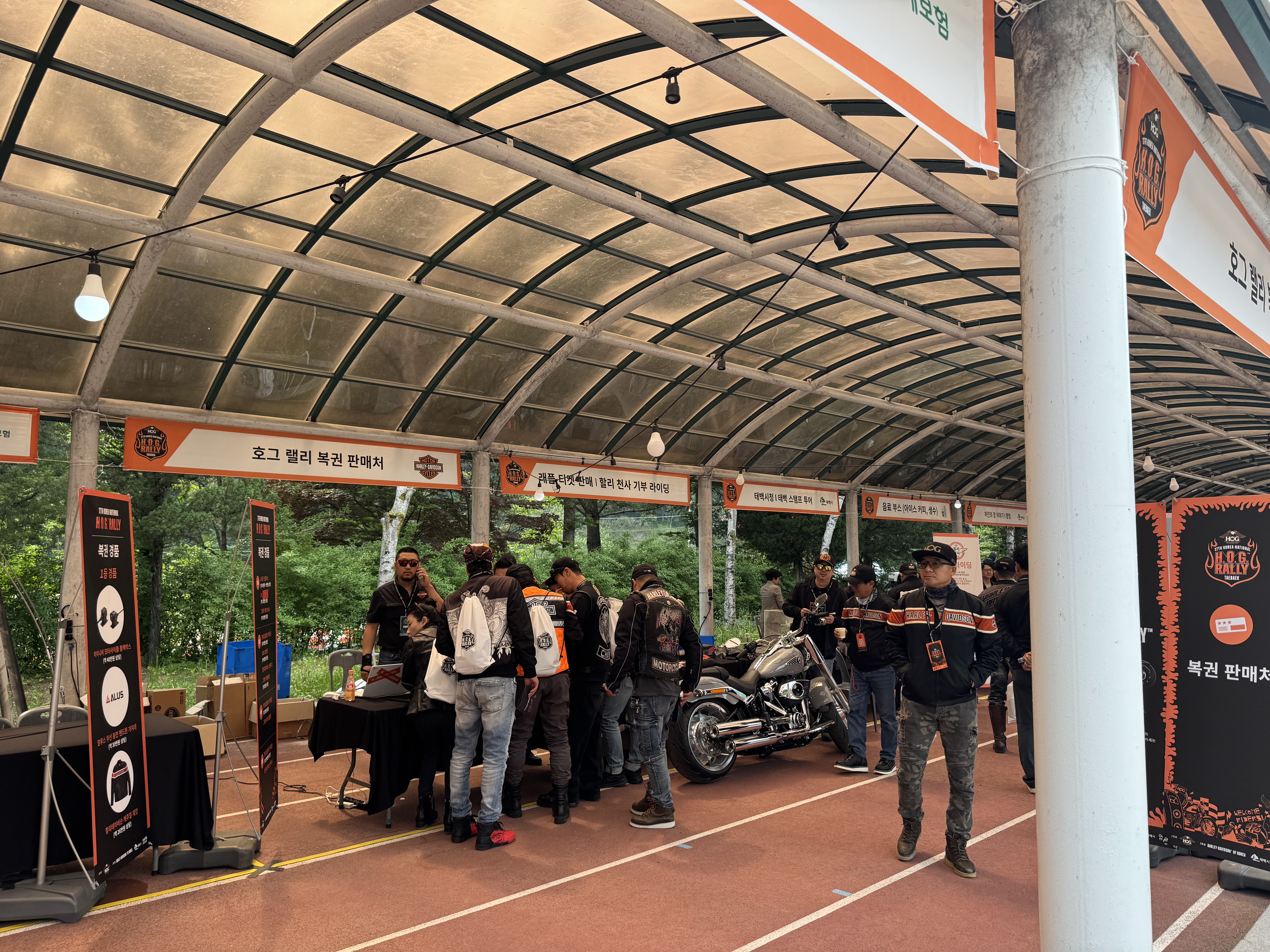 특히, 할리 데이비슨 의류랑 용품 파는 곳은 인산인해를 이루더고요.