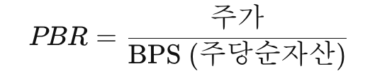 - PBR: 주가가 기업 자산 대비 얼마나 비싼지를 판단