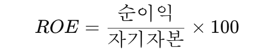 - ROE: 기업이 자기자본을 얼마나 효율적으로 활용하는지 평가