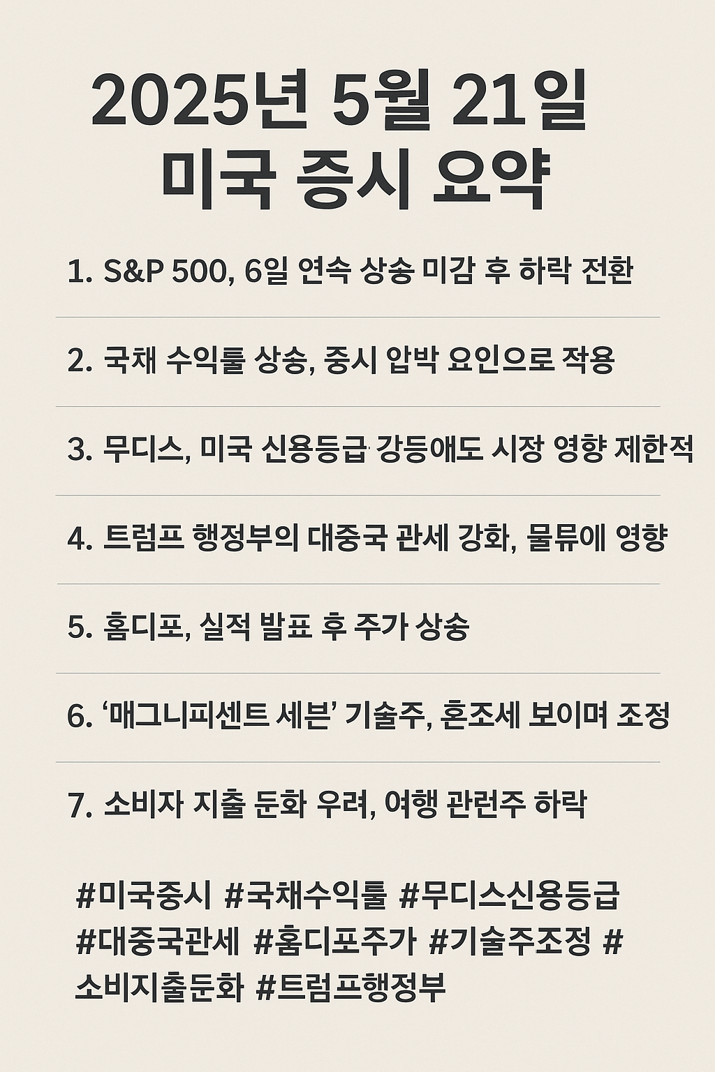 📰 1. S&P 500, 6일 연속 상승 마감 후 하락 전환