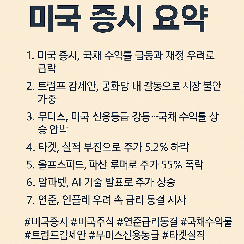 📰 1. 미국 증시, 국채 수익률 급등과 재정 우려로 급락