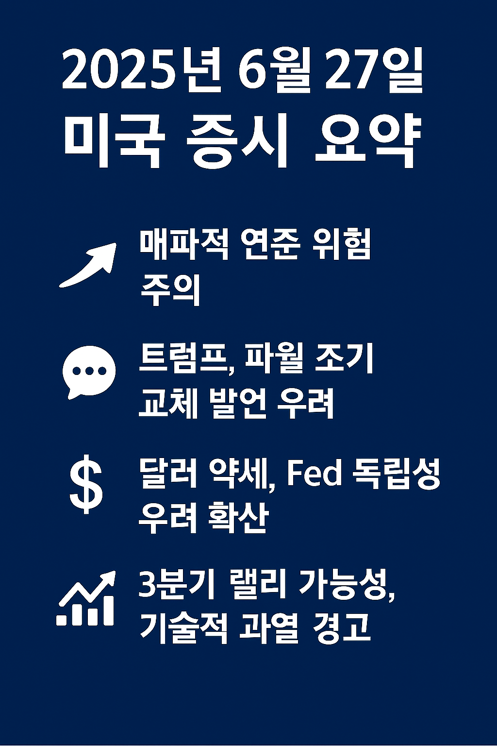 Fed 독립성 변화 가능성(트럼프 발언)이 시장의 심리를 흔들었으며, 동시에 달러 약세·기술주·금 등의 강세 포지션 과열 우려, PCE 호조 속 인플레 둔화 기대 등이 복합적으로 작용하며 변동성이 확대되었습니다.