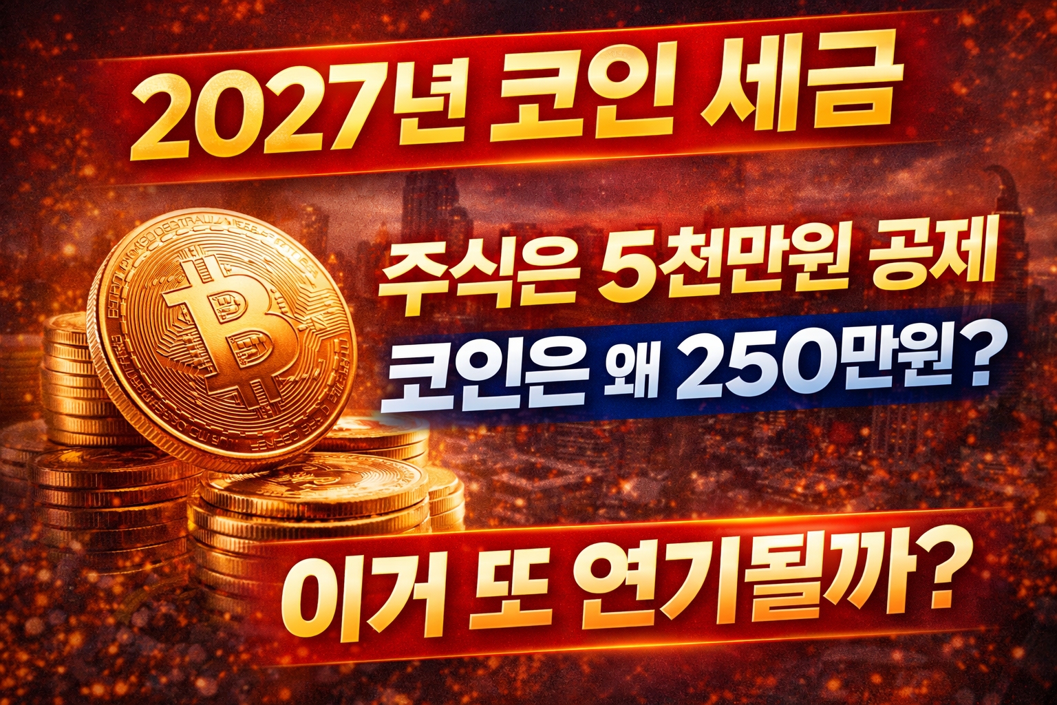 과연 2027년에는 정말 세금이 부과될까요? 그리고 왜 코인은 주식보다 공제가 적은 것일까요? 이번 글에서는 암호화폐 과세 제도의 구조, 논란, 그리고 추가 연기 가능성까지 자세히 분석해 보겠습니다.